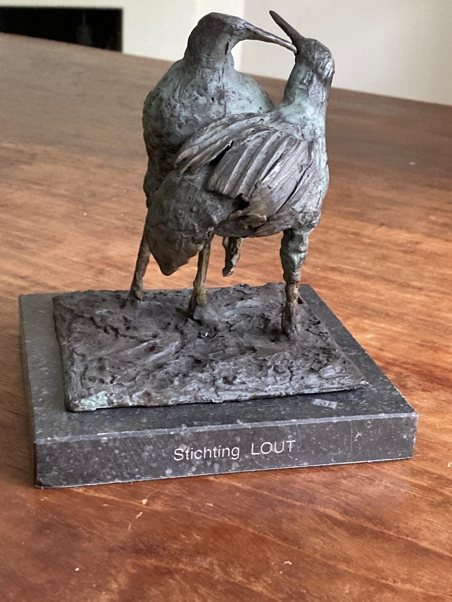 Vogelpaar. Beeldje door Hiske Bem, uitgereikt bij de Groenman-taalprijs