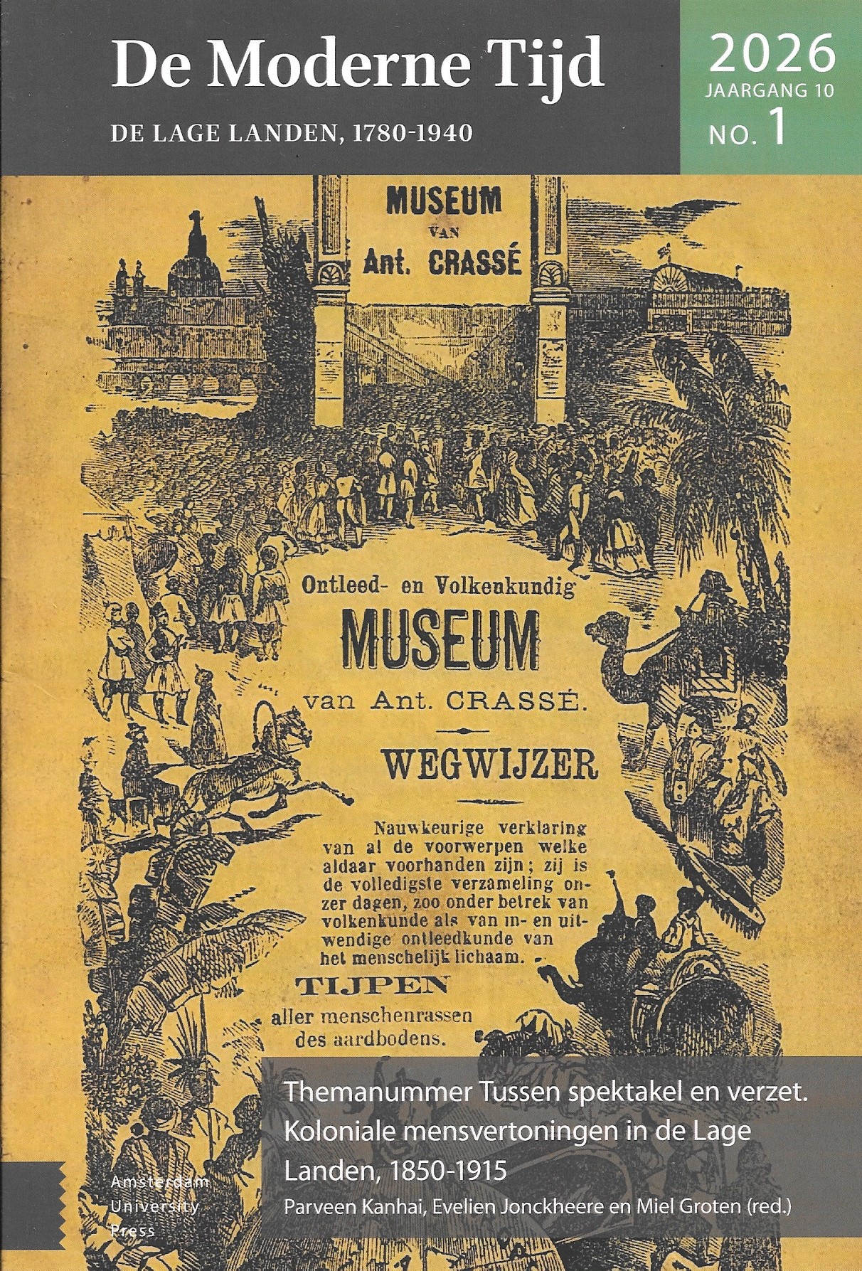 Van het tijdschrift De Moderne Tijd is onlangs een nieuwe aflevering verschenen, het eerste van deze nieuwe jaargang. Het thema van dit nummer is Tussen spektakel en verzet. Koloniale mensvertoningen in de Lage Landen, 1850-1915. Het tentoonstellen van mensen vanwege hun vermeende‘ anders-zijn’ heeft diepe historische wortels. In Europa werden sinds de vijftiende eeuw mensen uit niet-Europese culturen als bezienswaardigheden of diplomatieke geschenken naar koninklijke hoven gebracht. Ook Chinese zeelieden stelden al in de vijftiende eeuw Afrikanen tentoon in hun thuisland. Terwijl in Europa tot in de eerste helft van de negentiende eeuw vooral individuen of kleine groepen werden vertoond, vond tijdens de hoogtijperiode van het moderne imperialisme (1870-1914) een schaalvergroting plaats waarbij het vertonen van mensen uitgroeide tot een vorm van massavermaak.